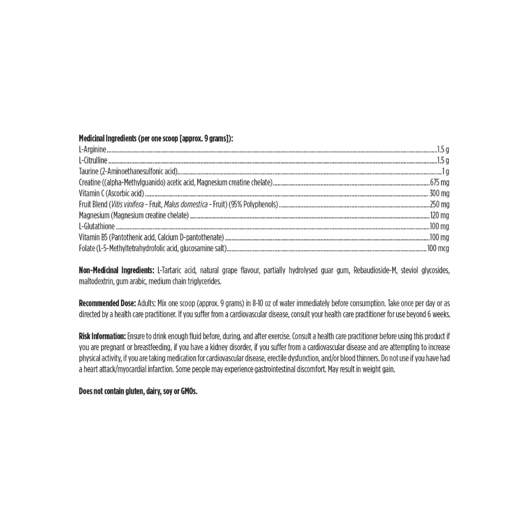 Recommended Dose: Adults: Mix one scoop (approx. 9 grams) in 8-10 oz of water immediately before consumption. Take once per day or as directed by a health care practitioner. If you have a history of cardiovascular disease, consult your health care practitioner for use beyond 6 weeks. Refer to the product label for dosing instructions, age-appropriateness, and relative risk statements.